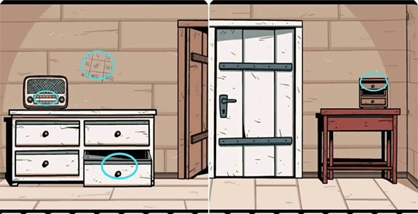 4、在白色门右侧的抽屉柜中找到两节电池,先装入对讲机,将频道调至4,听对讲机播放的音乐,再点击收音机,调节频道至对应的音乐频道(记住频道数字,不同音乐对应不同频道)。
